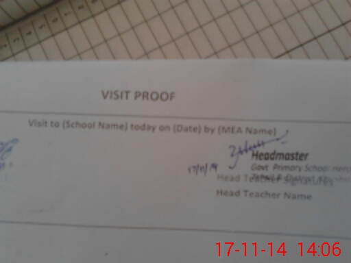 | Attendance Register | Head Teacher | MEA with School | Visit Proof |