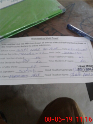 | Certified that this School was Inspected by the Undersigned MEA/DMO Today and the Information Stated Above is as Per Record. | |||||