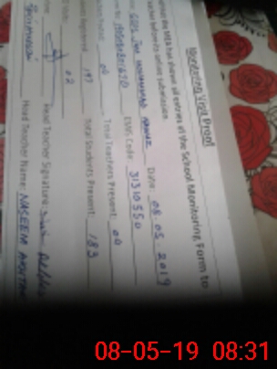 | Monitoring Date: 08-05-2019 | Start Time: 08-05-2019 08:01 AM | End Time: 08-05-2019 08:48 AM | Name of MEA: Za**** Hu**** | |