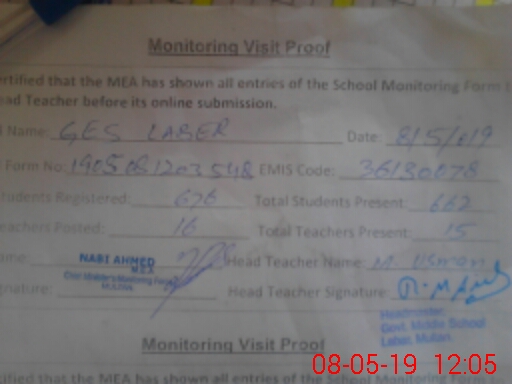 | Certified that this School was Inspected by the Undersigned MEA/DMO Today and the Information Stated Above is as Per Record. | |||||