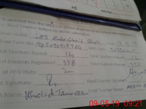 | Certified that this School was Inspected by the Undersigned MEA/DMO Today and the Information Stated Above is as Per Record. | |||||