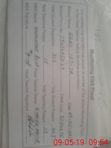 | Certified that this School was Inspected by the Undersigned MEA/DMO Today and the Information Stated Above is as Per Record. | |||||
