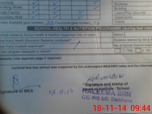 | Certified that this School was Inspected by the Undersigned MEA/DMO Today and the Information Stated Above is as Per Record. | |||||