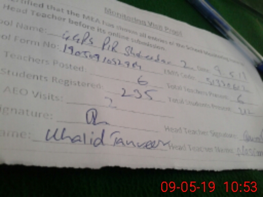 | EMIS Code: 31330612 | Name of School: GGPS PIR SHAHIDAN NO.2 | |||