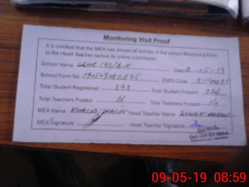| Certified that this School was Inspected by the Undersigned MEA/DMO Today and the Information Stated Above is as Per Record. | |||||