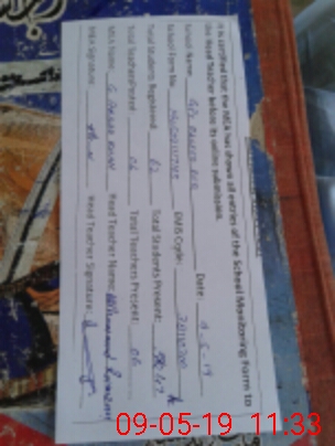 | Monitoring Date: 09-05-2019 | Start Time: 09-05-2019 10:58 AM | End Time: 09-05-2019 11:37 AM | Name of MEA: Gh**** Ak**** Kh**** | |