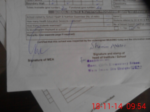 | Certified that this School was Inspected by the Undersigned MEA/DMO Today and the Information Stated Above is as Per Record. | |||||