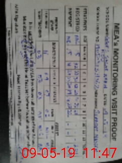 | Monitoring Date: 09-05-2019 | Start Time: 09-05-2019 10:46 AM | End Time: 09-05-2019 11:49 AM | Name of MEA: Sh**** Na**** | |