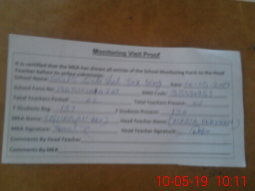 | Attendance Register | Head Teacher | MEA with School | Visit Proof |