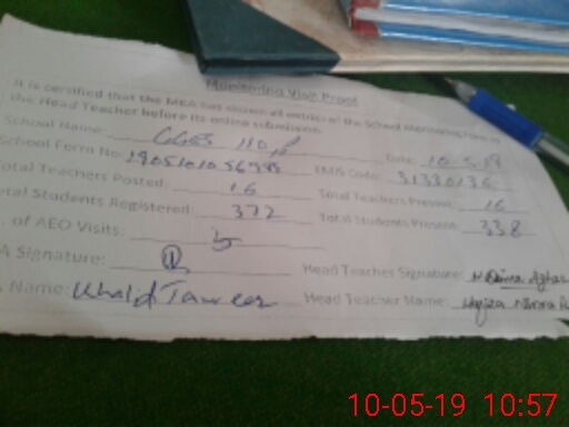 | Certified that this School was Inspected by the Undersigned MEA/DMO Today and the Information Stated Above is as Per Record. | |||||