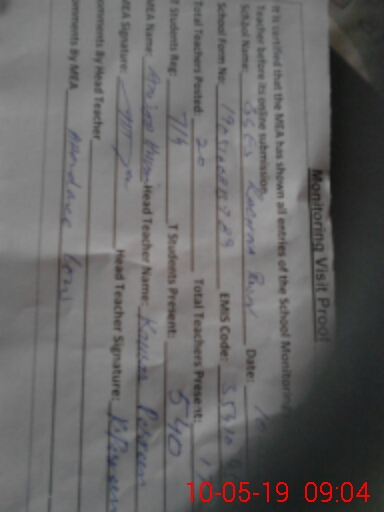 | Attendance Register | Head Teacher | MEA with School | Visit Proof |