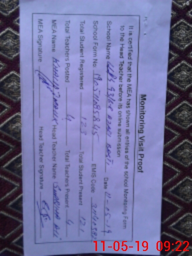 | Certified that this School was Inspected by the Undersigned MEA/DMO Today and the Information Stated Above is as Per Record. | |||||