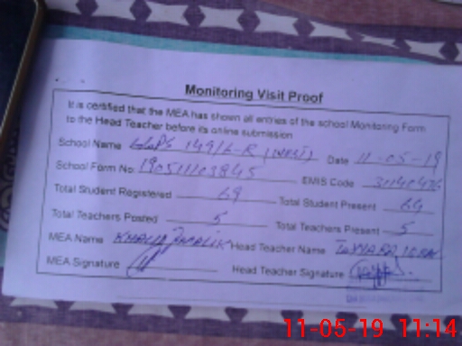 | Certified that this School was Inspected by the Undersigned MEA/DMO Today and the Information Stated Above is as Per Record. | |||||