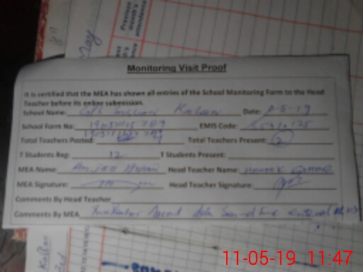 | Attendance Register | Head Teacher | MEA with School | Visit Proof |