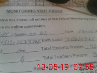 | Attendance Register | Head Teacher | MEA with School | Visit Proof |