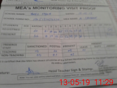 | Attendance Register | Head Teacher | MEA with School | Visit Proof |
