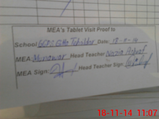 | Attendance Register | Head Teacher | MEA with School | Visit Proof |