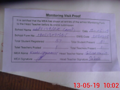 | Attendance Register | Head Teacher | MEA with School | Visit Proof |