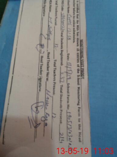 | Monitoring Date: 13-05-2019 | Start Time: 13-05-2019 10:30 AM | End Time: 13-05-2019 11:04 AM | Name of MEA: MU**** SI**** | |