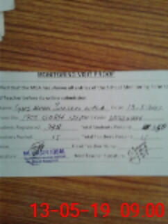 | Attendance Register | Head Teacher | MEA with School | Visit Proof |