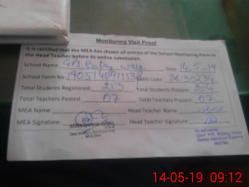 | EMIS Code: 36130234 | Name of School: GES BOTAY WALA P/ O GULZAR PUR | |||