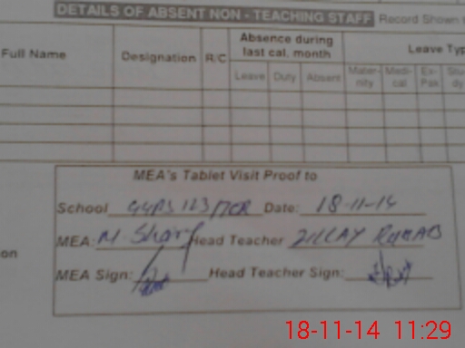 | Attendance Register | Head Teacher | MEA with School | Visit Proof |