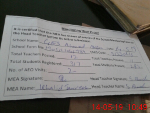 | Attendance Register | Head Teacher | MEA with School | Visit Proof |