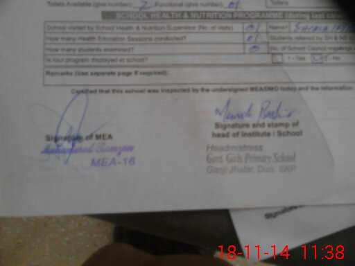| Certified that this School was Inspected by the Undersigned MEA/DMO Today and the Information Stated Above is as Per Record. | |||||