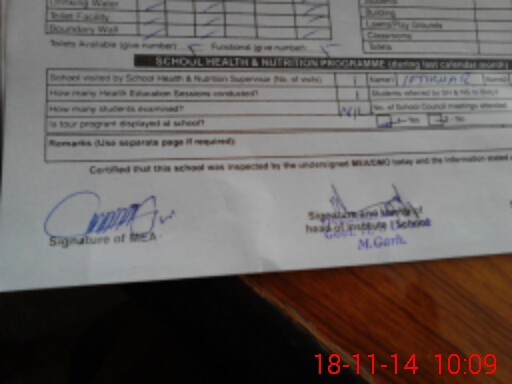 | Certified that this School was Inspected by the Undersigned MEA/DMO Today and the Information Stated Above is as Per Record. | |||||