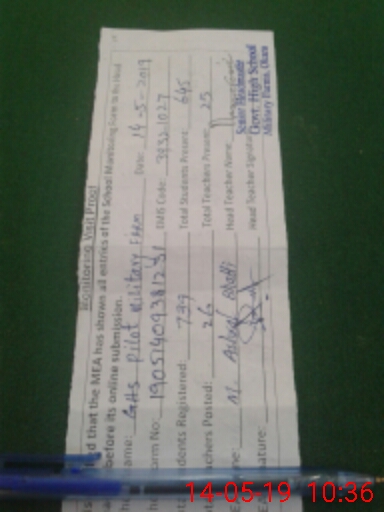 | Certified that this School was Inspected by the Undersigned MEA/DMO Today and the Information Stated Above is as Per Record. | |||||