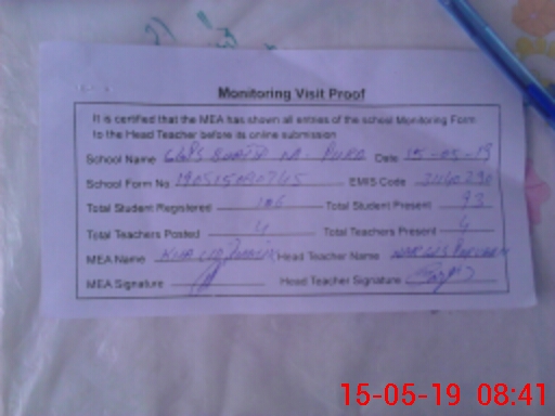 | Attendance Register | Head Teacher | MEA with School | Visit Proof |