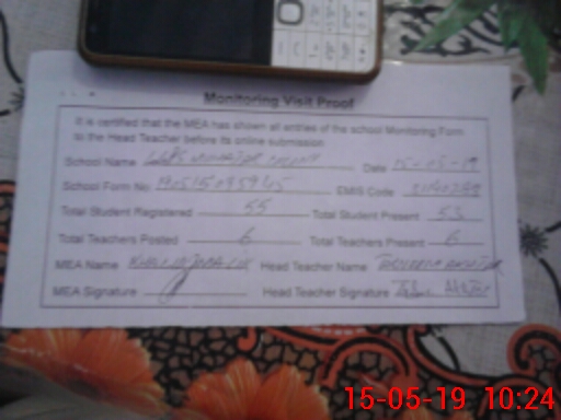| Attendance Register | Head Teacher | MEA with School | Visit Proof |