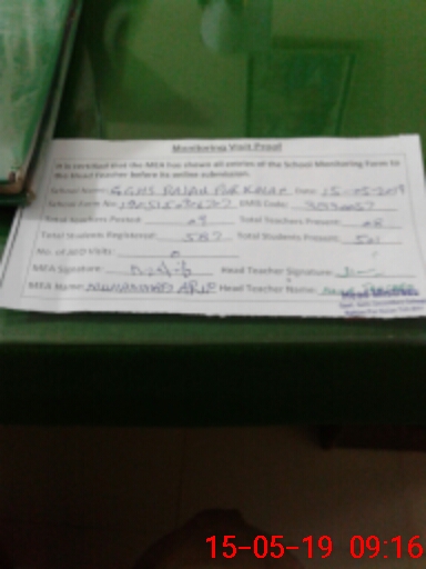| Attendance Register | Head Teacher | MEA with School | Visit Proof |