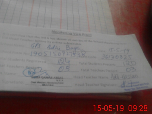 | EMIS Code: 36130325 | Name of School: GPS ADHI BAGH MOZA TARAGARH P/O KHOKHAR | |||