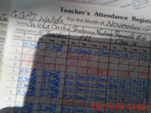 | Total no. of Classrooms: 4 No. of Classrooms Used for Teaching: 4 No. of Classrooms Storing Old Furniture, FTBs, etc: 0Comments if Any: School is running in wapda colony quarter |