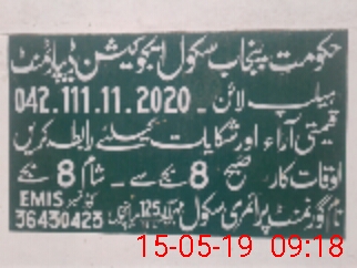 | EMIS Code: 36430423 | Name of School: GPS 125/15-L MEHAR ABAD, MIAN CHANNU | |||