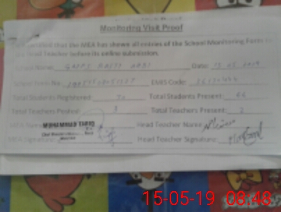 | Attendance Register | Head Teacher | MEA with School | Visit Proof |