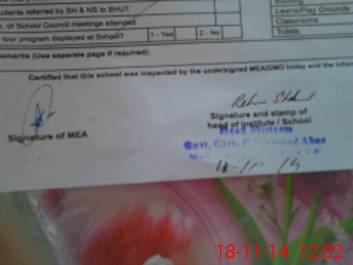 | Certified that this School was Inspected by the Undersigned MEA/DMO Today and the Information Stated Above is as Per Record. | |||||