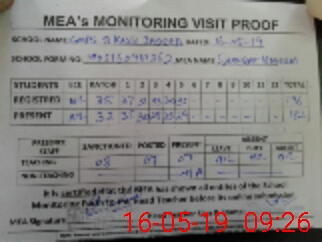 | Attendance Register | Head Teacher | MEA with School | Visit Proof |