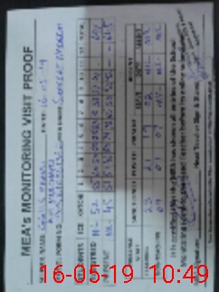 | Monitoring Date: 16-05-2019 | Start Time: 16-05-2019 09:40 AM | End Time: 16-05-2019 10:49 AM | Name of MEA: Sh**** Na**** | |