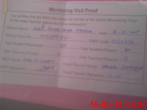 | EMIS Code: 31150276 | Name of School: GGPS DHAB NEHAL WAZIRKA | |||