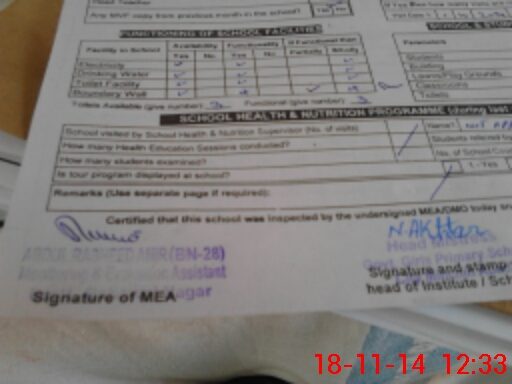 | Certified that this School was Inspected by the Undersigned MEA/DMO Today and the Information Stated Above is as Per Record. | |||||