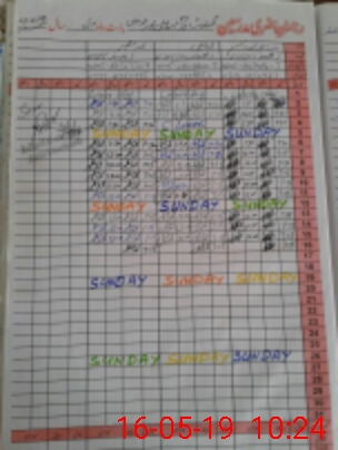 | CNIC | Full Name | Designation | R/C | Absence During Last Calender Month |