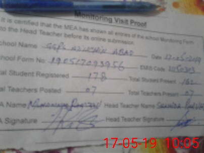 | Certified that this School was Inspected by the Undersigned MEA/DMO Today and the Information Stated Above is as Per Record. | |||||
