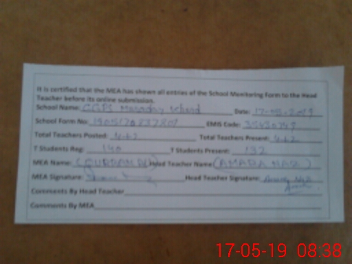 | Attendance Register | Head Teacher | MEA with School | Visit Proof |