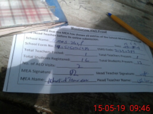 | Attendance Register | Head Teacher | MEA with School | Visit Proof |