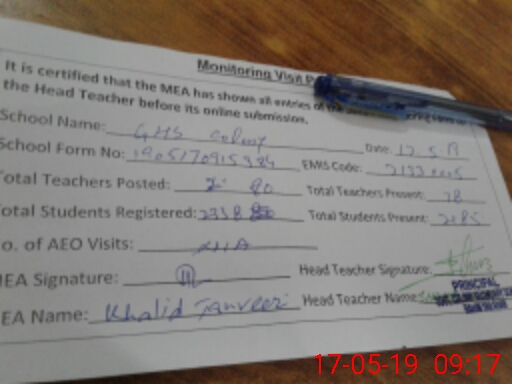 | EMIS Code: 31330005 | Name of School: GHS COLONY RAHIM YAR KHAN | |||