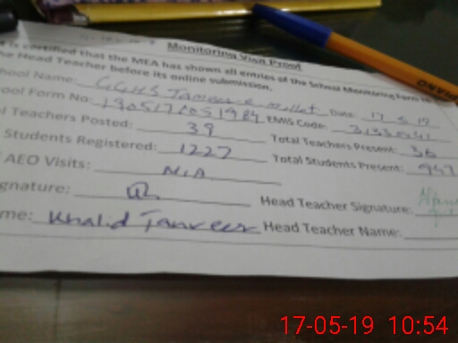 | EMIS Code: 31330041 | Name of School: GGHS TAMIR-E-MILLAT | |||