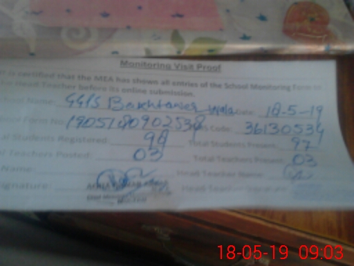 | Certified that this School was Inspected by the Undersigned MEA/DMO Today and the Information Stated Above is as Per Record. | |||||