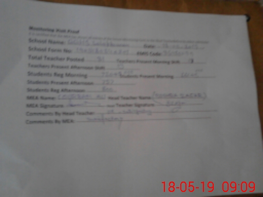 | Attendance Register | Head Teacher | MEA with School | Visit Proof |